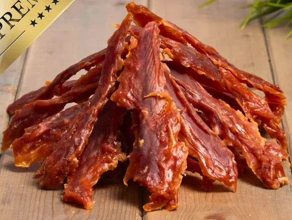 Getrocknete Entenbrust ist für jeden Hund als Leckerli für zwischendurch oder auch beim Training als Belohnung optimal. Sie ist besonders fettarm und selbst Hunde, die zu Übergewicht neigen, müssen nicht auf diesen Gaumenschmaus verzichten. Entenbrust ist äußerst gut verträglich und wird auch von Hunden mit Nahrungsmittelunverträglichkeiten und Allergien gut vertragen.